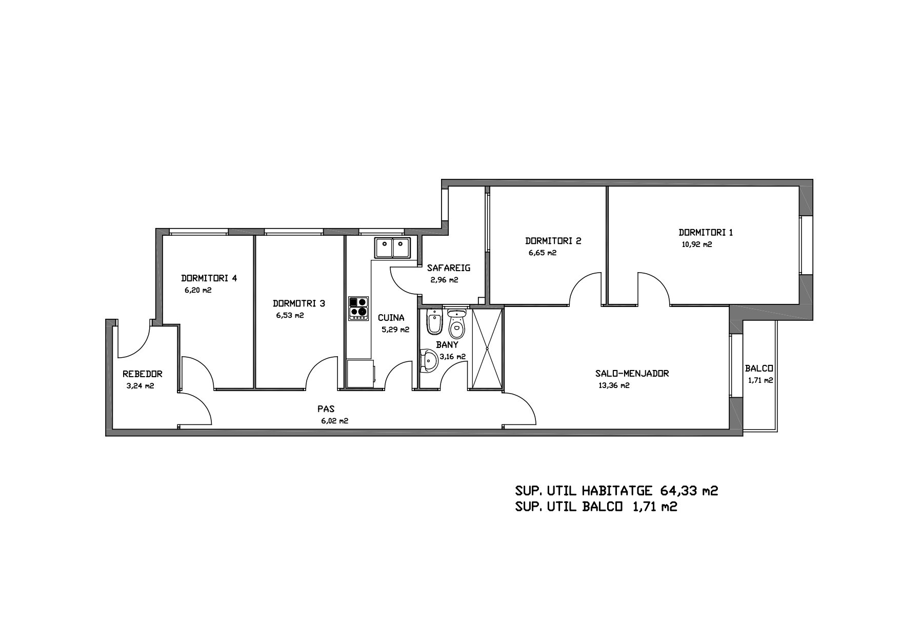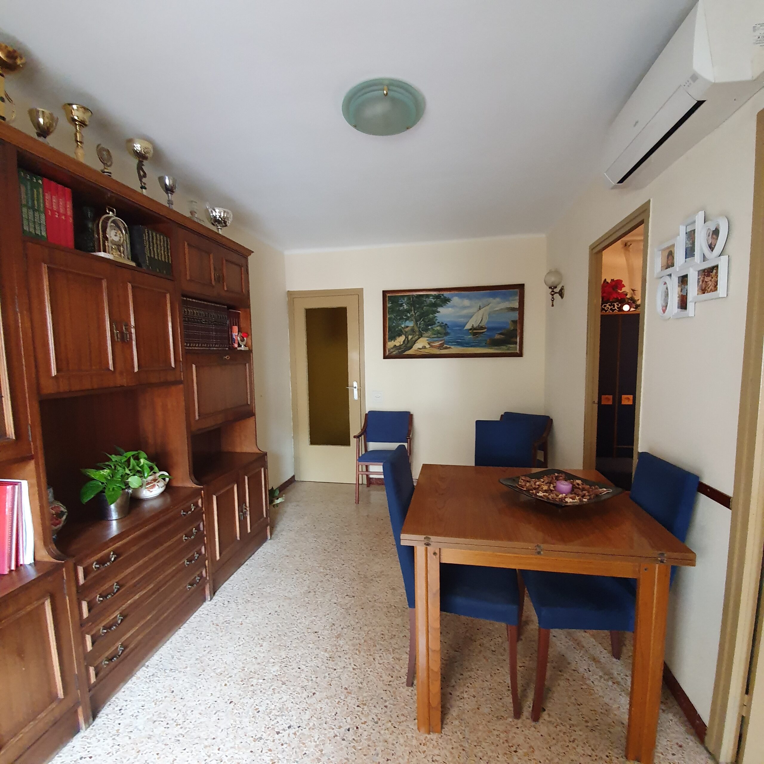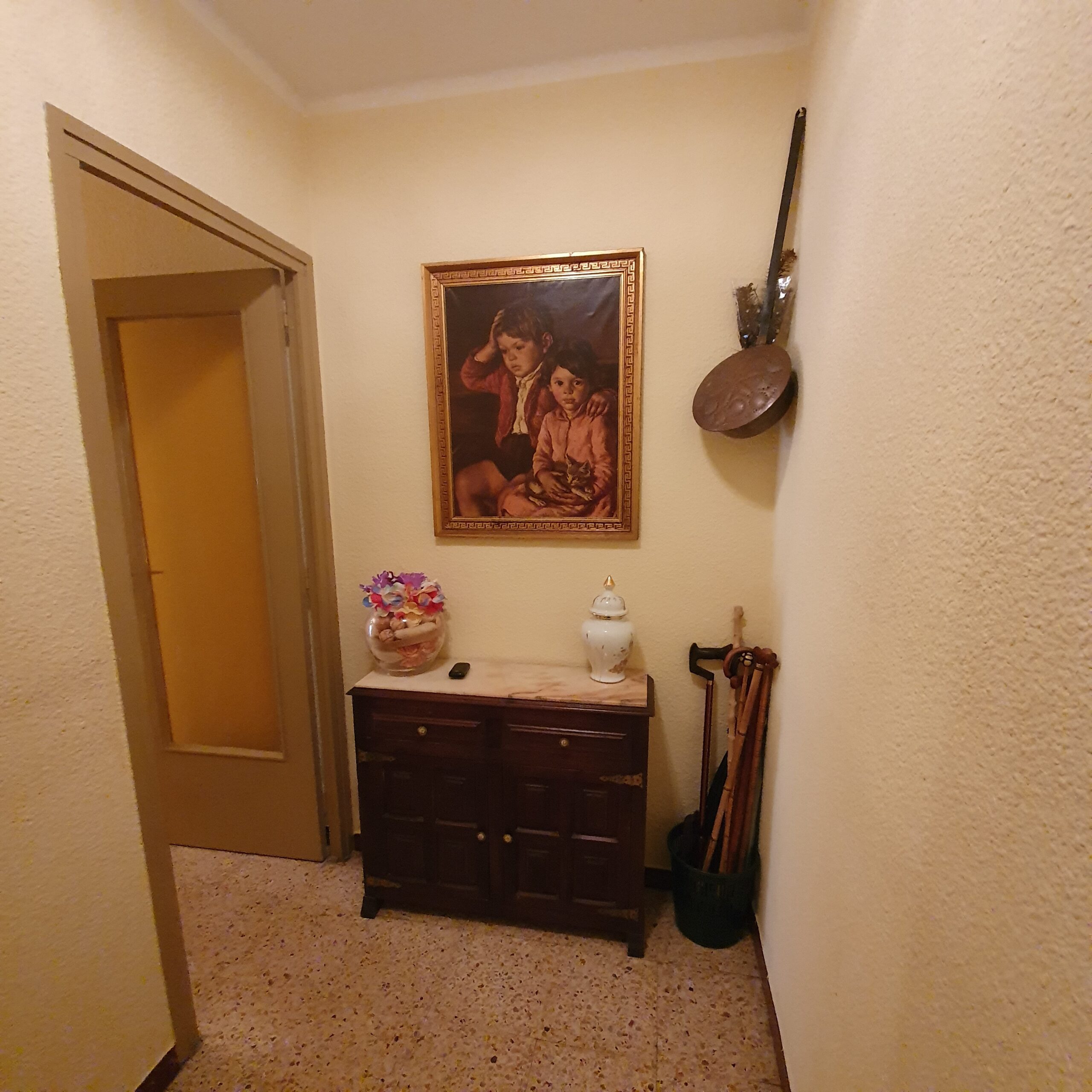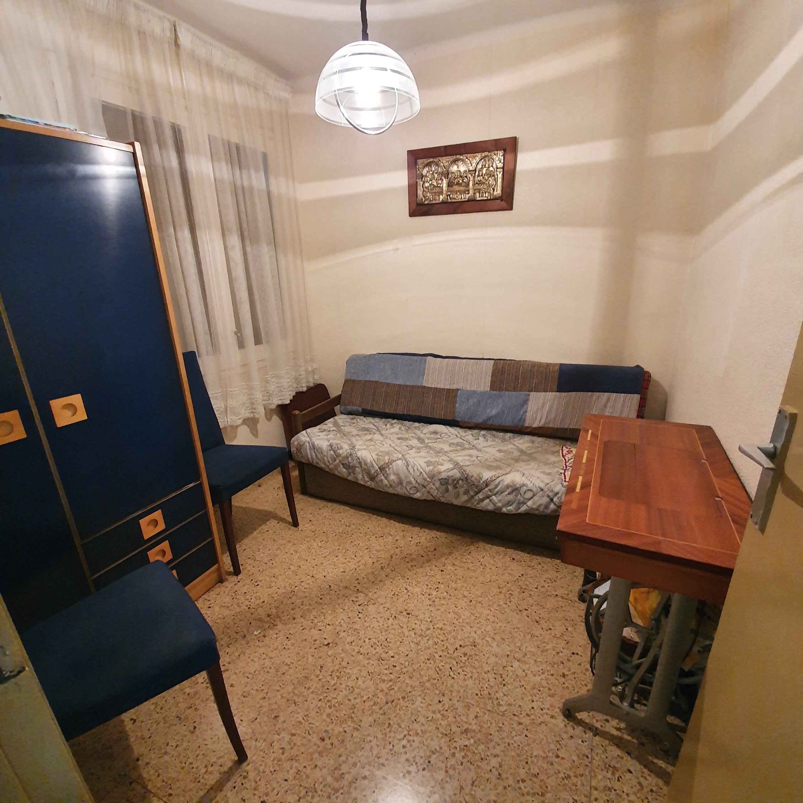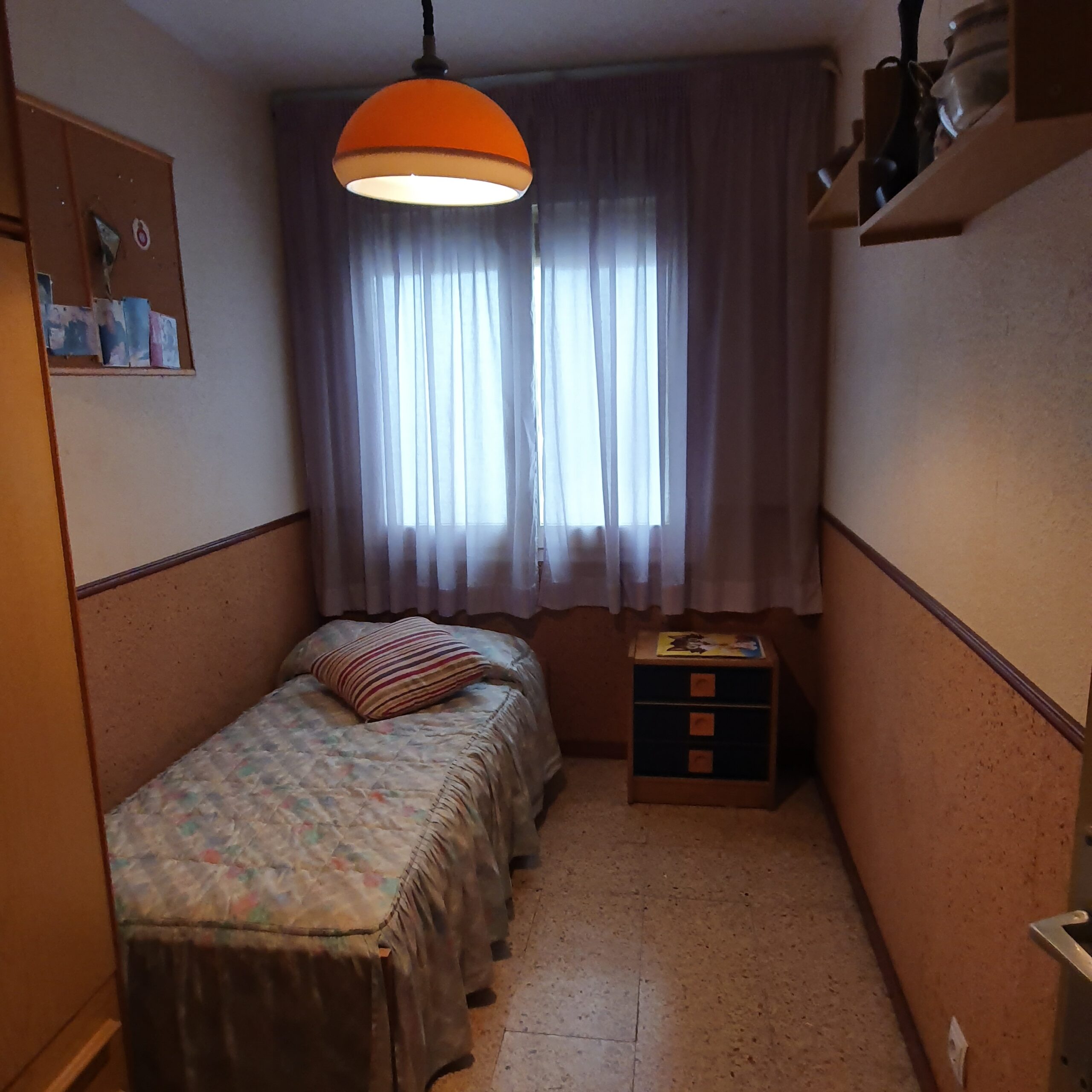 L’habitatge està per reformar, es compon de quatre dormitoris, tres individuals i un doble, un saló-menjador amb accés a un petit balcó, un bany complet amb plat de dutxa i una cuina equipada amb accés a un safareig tancat.