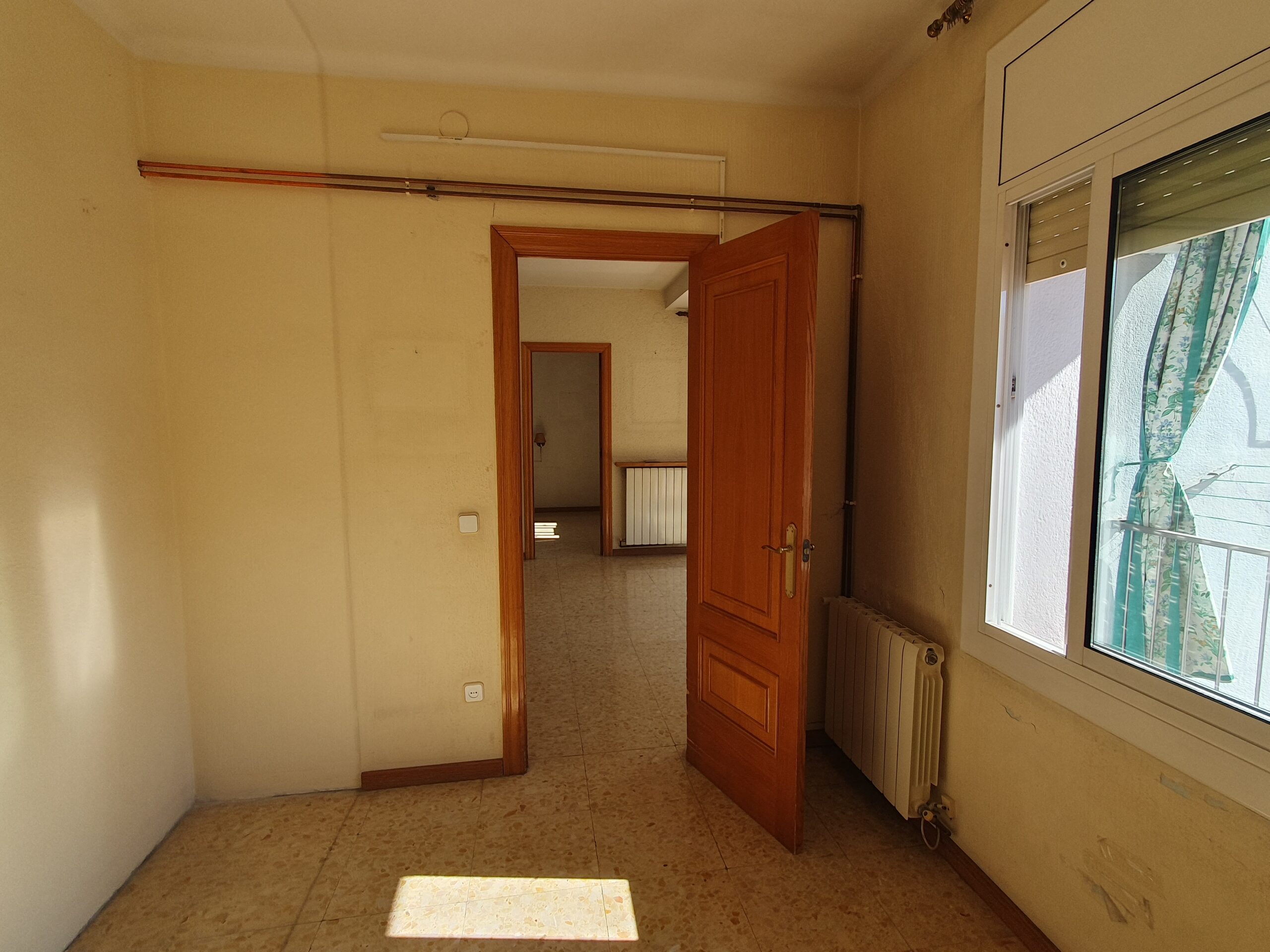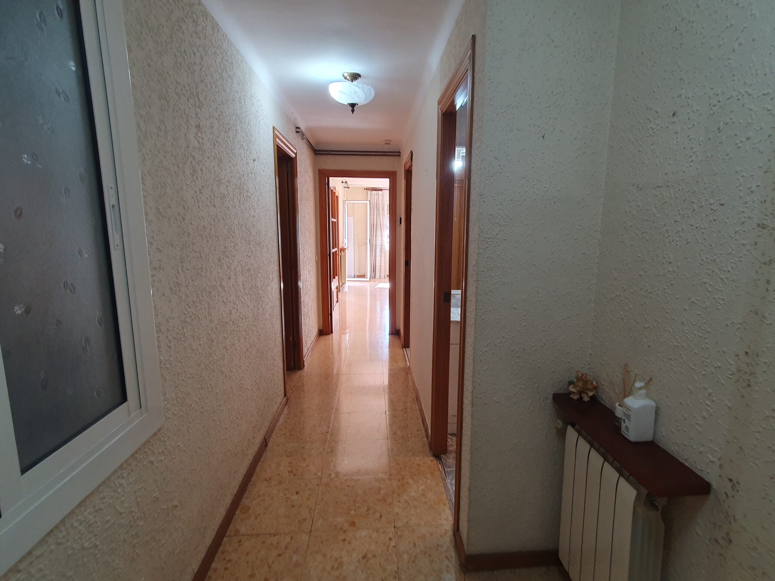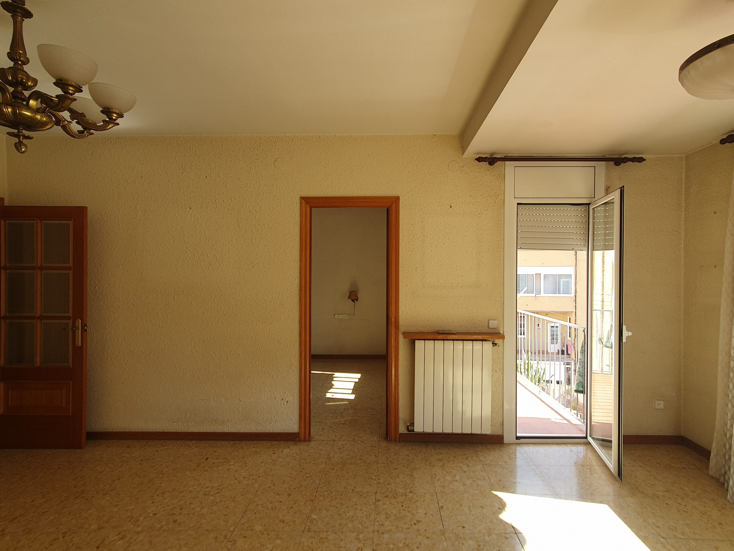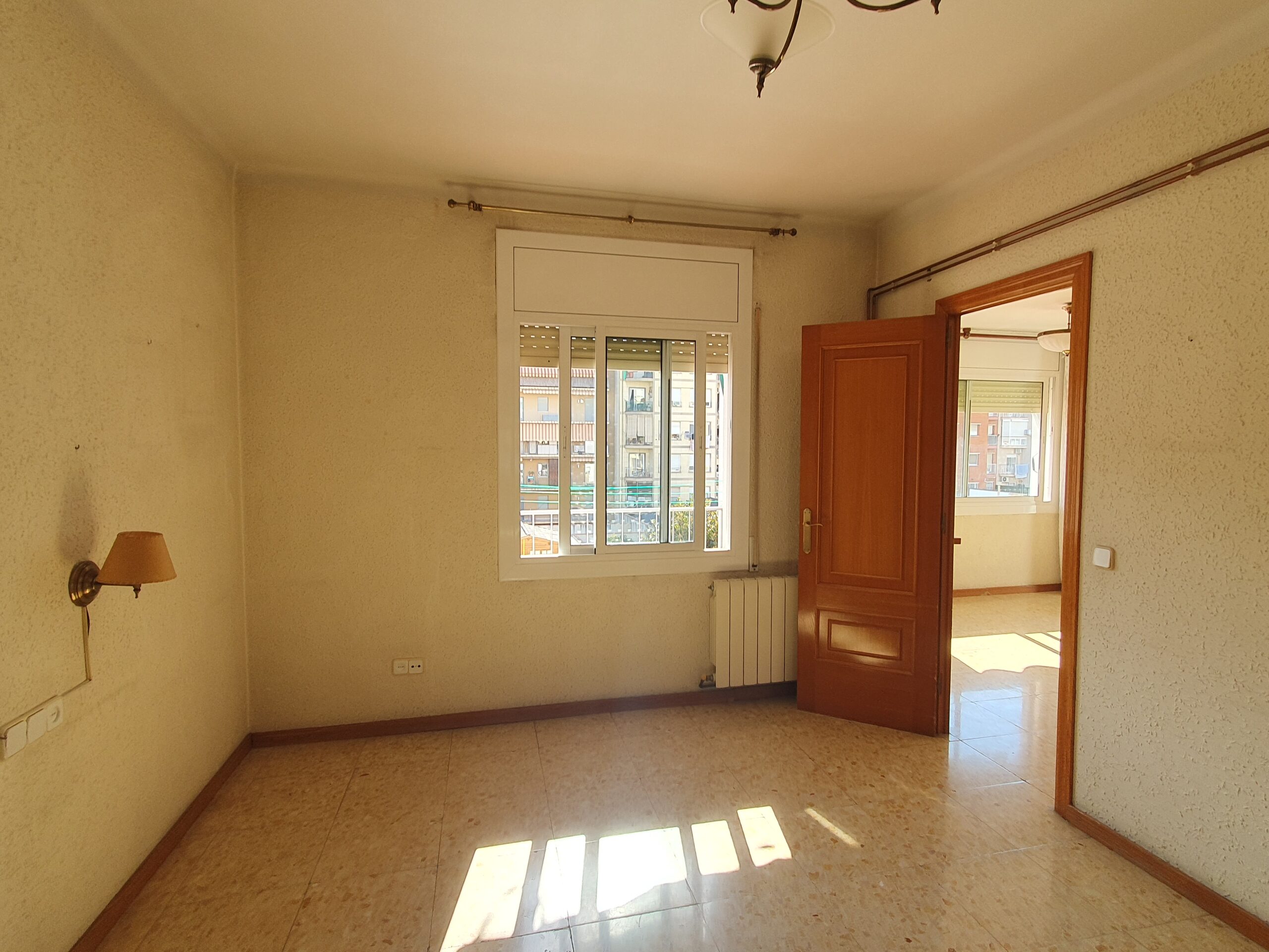 Es distribueix en un saló-menjador amb sortida a dos balcons, quatre dormitoris, un doble de 15 m2 que disposa d’armari encastat i tres d’individuals, un bany complet amb plat de dutxa i una cuina actualitzada. L’habitatge disposa de calefacció per radiadors a gas i tancaments de doble vidre.